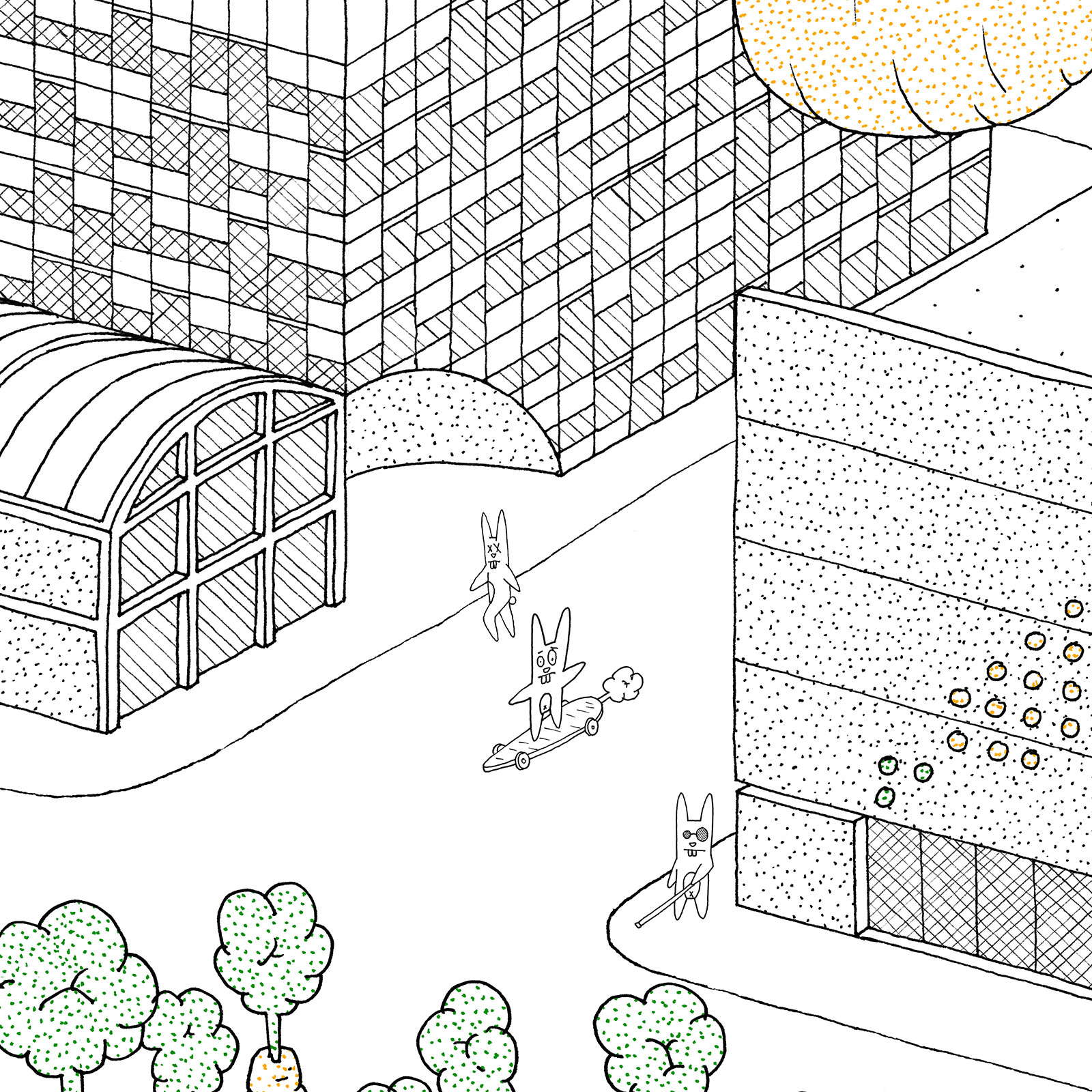 Illustration de la ville carotte dans le cadre de l’exposition du journal en ligne Carotte Architecture